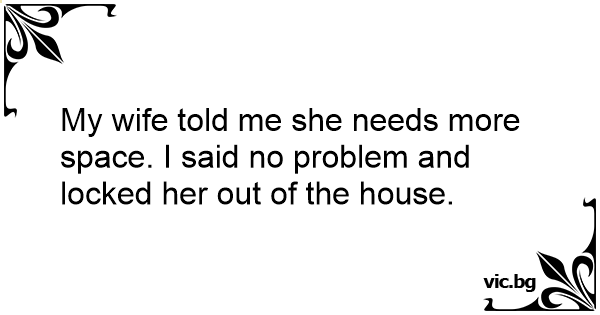 My wife told me she needs more space. I said no problem and locked her out of the house.