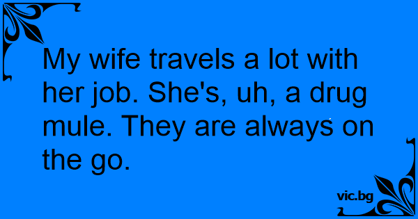 My wife travels a lot with her job. She's, uh, a drug mule. They are always on the go.