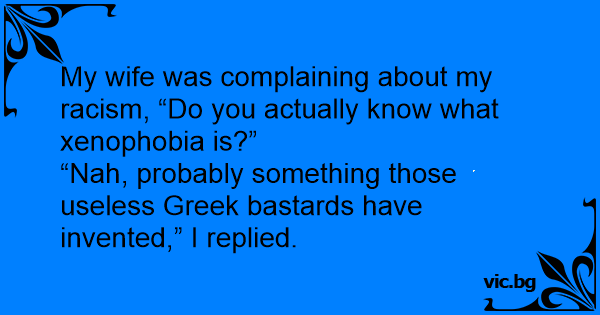 My wife was complaining about my racism, “Do you actually know what xenophobia is?”