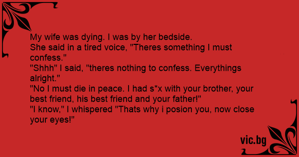 Este es un hombre que se esta muriendo y la esposa está al lado de él. Amor, dice él, tengo que confesarte algo, algo que no puedo llevar a la tumba sin decírtelo. La esposa le dice que no se...