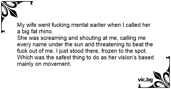 My wife went fuскing mental earlier when I called her a big fат rhino.