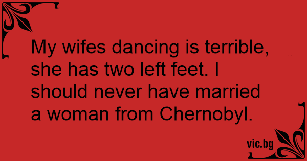 My wifes dancing is terrible, she has two left feet. I should never have married a woman from Chernobyl.