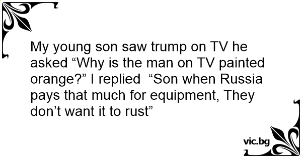 My young son saw trump on TV he asked “Why is the man on TV painted orange?” I replied “Son when Russia pays that much for equipment, They don’t want it to rust”