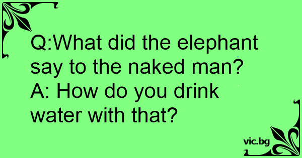 Hvad sagde elefanten til den nøgne man?– “Hvordan kan du trække vejret igennem den lille ting?”