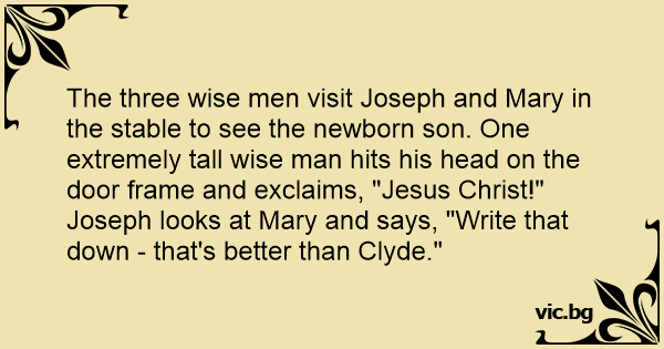 Joseph looks at Mary and says, "Write that down - that's better than Clyde."