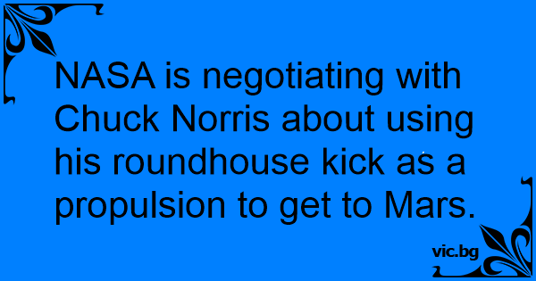 NASA is negotiating with Chuck Norris about using his roundhouse kick as a propulsion to get to Mars.