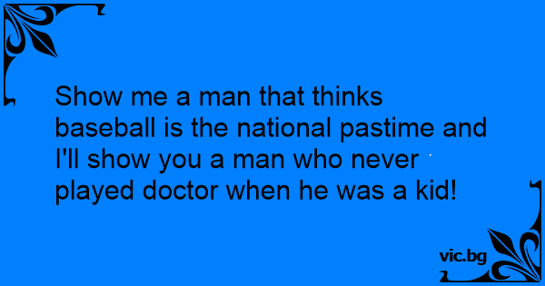 Show me a man that thinks baseball is the national pastime and I'll show you a man who never played doctor when he was a kid!