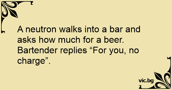 A neutron walks into a bar and asks how much for a вееr. Bartender replies “For you, no charge”.