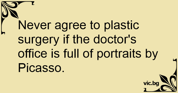 Never agree to plastic surgery if the doctor's office is full of portraits by Picasso.