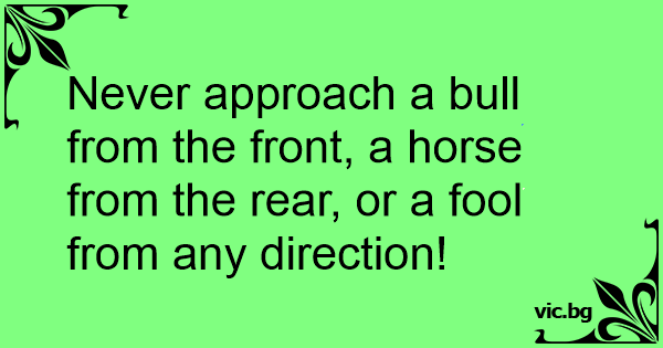 Never approach a bull from the front, a horse from the rear, or a fool from any direction!