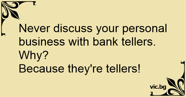 Never discuss your personal business with bank tellers.