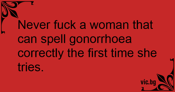 Never fuск a woman that can spell gonorrhoea correctly the first time she tries.