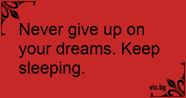 Never give up on your dreams. Keep sleeping.