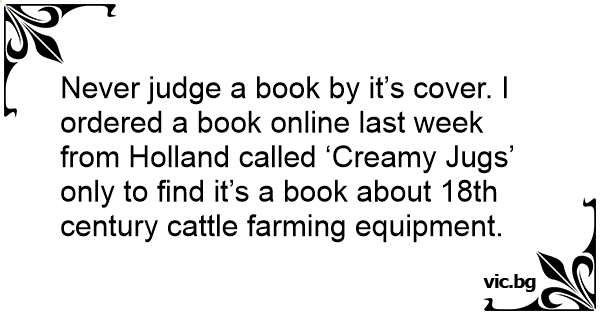 Never judge a book by it’s cover. I ordered a book online last week from Holland called ‘Creamy Jugs’ only to find it’s a book about 18th century cattle farming equipment.