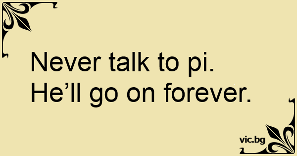 Never talk to pi. He’ll go...
