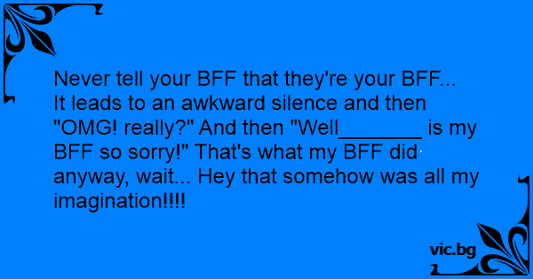 It leads to an awkward silence and then "ОМG! really?" And then "Well_______ is my BFF so sorry!" That's what my BFF did anyway, wait... Hey that somehow was all my imagination!!!!