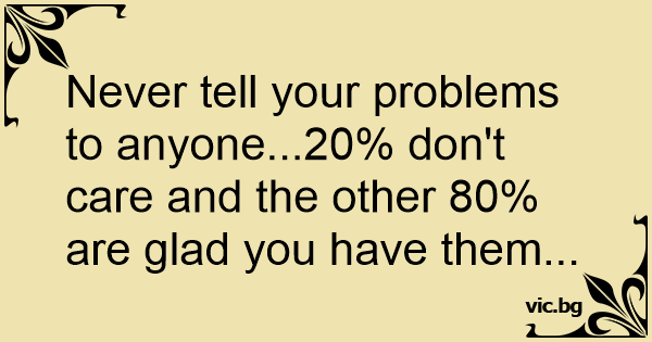 Never tell your problems to anyone...20% don't care and the other 80% are glad you have them...
