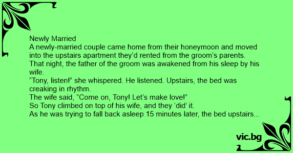“Come on, Tony!” said the wife. “Let’s make love again!”