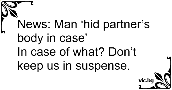 News: Man ‘hid partner’s body in case’<br />In case of what? Don’t keep us in suspense.