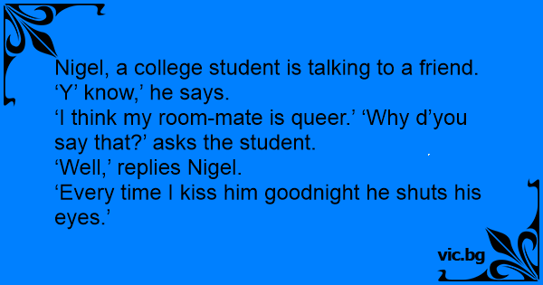 ‘I think my room-mate is quееr.’ ‘Why d’you say that?’ asks the student.