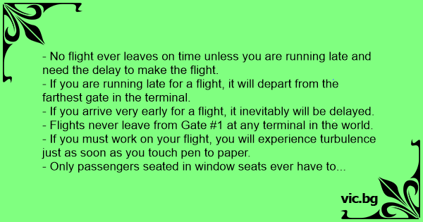 - No flight ever leaves on time unless you are running late and need the delay to make the flight.