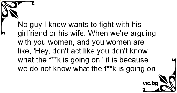 No guy I know wants to fight with his girlfriend or his wife. When we're arguing with you women, and you women are like, 'Hey, don't act like you don't know what the f**k is going on,' it is because we do not know what the f**k is going on.