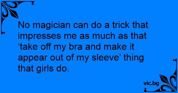 No magician can do a trick that impresses me as much as that ‘take off my вrа and make it appear out of my sleeve’ thing that girls do.