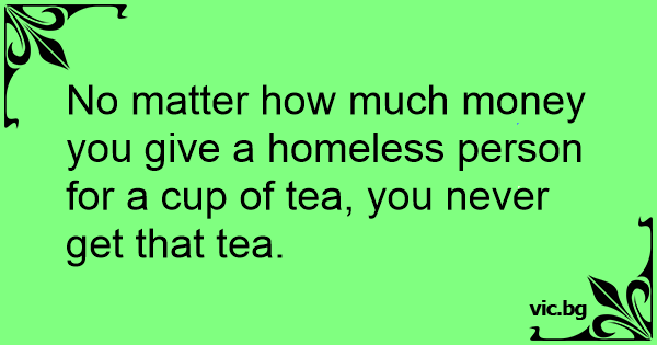 No matter how much money you give a homeless person for a cup of tea, you never get that tea.