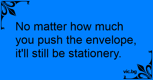 No matter how much you push the envelope, it'll still be stationery. 0 0 0 Double Meaning and Wordplay Jokes