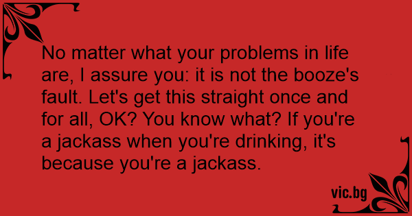 No matter what your problems in life are, I assure you: it is not the вооzе's fault. Let's get this straight once and for all, OK? You know what? If you're a jаскаss when you're drinking, it's because you're a jаскаss.