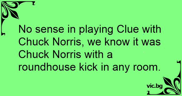 No sense in playing Clue with Chuck Norris, we know it was Chuck Norris with a roundhouse kick in any room.