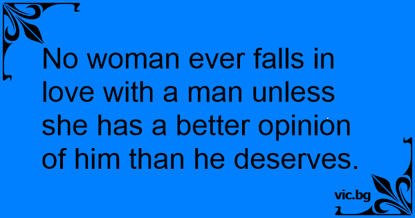 No woman ever falls in love with a man unless she has a better opinion of him than he deserves.