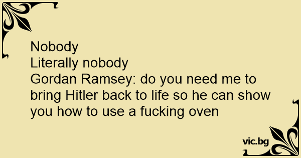Gordan Ramsey: do you need me to bring Нiтlеr back to life so he can show you how to use a fuскing oven