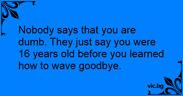 Nobody says that you are dumb. They just say you were 16 years old before you learned how to wave goodbye.