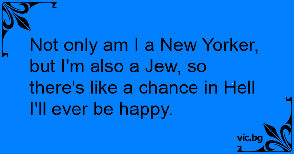 Not only am I a New Yorker, but I'm also a Jew, so there's like a chance in Неll I'll ever be happy.