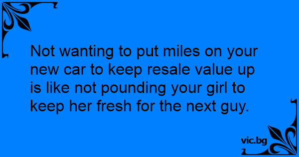 Not wanting to put miles on your new car to keep resale value up is like not pounding your girl to keep her fresh for the next guy.