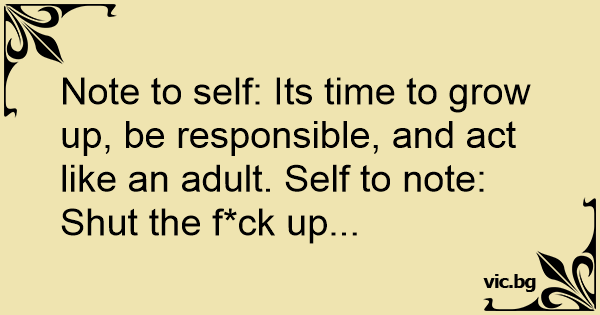 Note to self: Its time to grow up, be responsible, and act like an adult. Self to note: Shut the fuск up...
