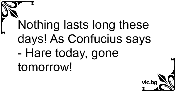 Nothing lasts long these days! As Confucius says - Hare today, gone tomorrow!