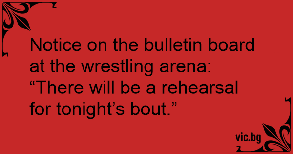 Notice on the bulletin board at the wrestling arena: