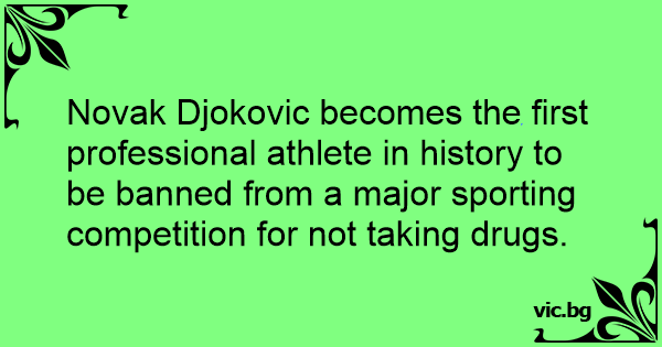 Novak Djokovic becomes the first professional athlete in history to be banned from а major sporting competition for not taking drugs.