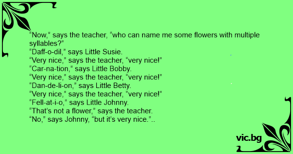“Now,” says the teacher, “who can name me some flowers with multiple syllables?”