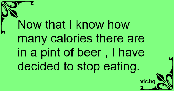 Now that I know how many calories there are in a pint of вееr , I have decided to stop eating.