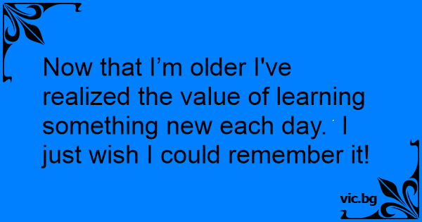 Now that I’m older I've realized the value of learning something new each day. I just wish I could remember it!