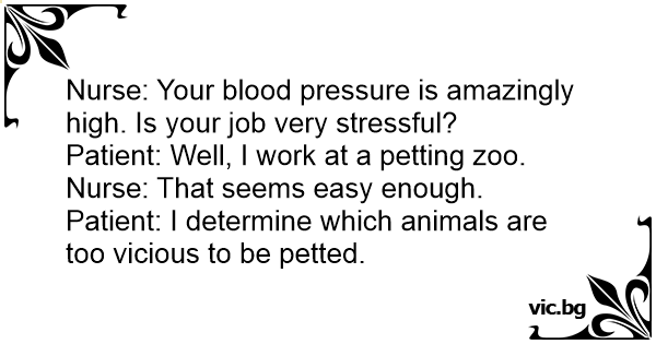Nurse: Your blood pressure is amazingly high. Is your job very stressful?