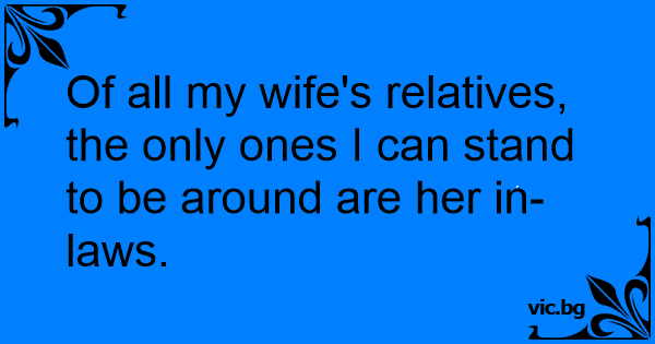 Of all my wife's relatives, the only ones I can stand to be around are her in-laws.