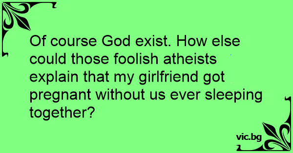 Of course God exist. How else could those foolish atheists explain that my girlfriend got pregnant without us ever sleeping together?