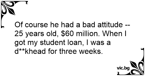 Of course he had a bad attitude -- 25 years old, $60 million. When I got my student loan, I was a d**khead for three weeks.