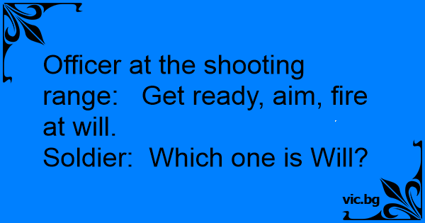 Officer at the shooting range: Get ready, aim, fire at will.