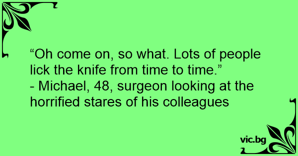 “Oh come on, so what. Lots of people liск the knife from time to time.”