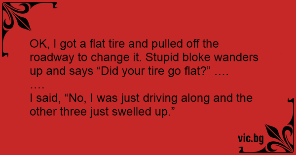 OK, I got a flat tire and pulled off the roadway to change it. Sтuрid bloke wanders up and says “Did your tire go flat?” ….